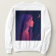 Uma ilustração sonhadora de uma garota com cabelos roxos fluindo, mirando em um céu noturno mágico cheio de estrelas e uma lua crescente brilhando. Os tons cor-de-rosa suave e vermelho criam um humor romântico e misterioso, enquanto os sotaques florais sutis adicionam um toque de encanto e paz. Perfeito para sonhadores, românticos e amantes da arte mágica da fantasia.