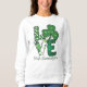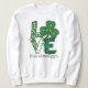 Celebrar Ruas. O Dia de Patrick em estilo com esta camisola festiva e divertida. A design apresenta a palavra "AMOR" em padrões verdes, audaciosos e criativos: o "L" com bolinhas, o "O" como uma charmosa, o "V" enfeitiçado por vergonhas, e o "E" numa xadrez verde clássica. Abaixo da palavra Amor estão as palavras "Irlandeses Shenanigans" acrescentando um toque de humor e espírito de feriado. Perfeito por ficar aconchegante durante desfiles, festas, ou simplesmente por mostrar o seu orgulho irlandês, esta camisola é imperdível para a temporada!