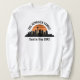 Cool customized Seattle trip sweatshirt featuring the city skyline at sunset. A silhouette of the city buildings in Washington, including the space needle above your personalized text for your family vacation.