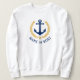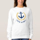 Uma âncora de barco náutica, folhas de ouro e uma estrela dourada com seu nome personalizado ou nome de barco em uma camisola branca feminina. Várias cores de camisa para escolher. Faz um presente de excelente.