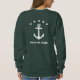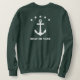 Camisola na moda com âncora clássica personalizada, cinco estrelas e seu nome personalizado, nome do barco ou outro texto desejado em branco na floresta verde. Impresso na frente e atrás. Escolha entre várias cores e faça ajustes para combinar a engrenagem do barco. Faz um presente excelente para qualquer ocasião. Perfeito para qualquer época do ano.