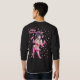 Vibrant pink anime-inspired character with fluffy trim and heart motif backdrop. Bold, playful cosplay vibe for Valentine- or pop-culture merch on apparel and accessories.