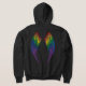 Este capuz tem duas impressões, um conjunto de asas impressas no sinalizador LGBTQ cores no verso e um halo correspondente no seio esquerdo frontal. Vista este capuz ao seu próximo festival de orgulho para mostrar-lhe voando as cores da bandeira LGBTQ. Faz um excelente se tratar de presente.