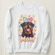 Smiling Rottweiler with bold “Dog Mom” lettering. Cheerful pet portrait ideal for dog lovers, Mother's Day gifts, stickers, apparel, posters and social media.