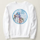 Camisola de Natal com um design "Deixe-a nevar" com um boneco de neve e seu amigo peludo em um terno de Papai noel.