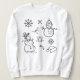 Natal preto e branco desenhado à mão, flocos de neve, boneco de neve, camisola de rabisco. Boêmia, cana doce, assaltante, design estética de inverno. Doodle, simples, camiseta mínima.