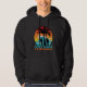 South Beach Florida retro sunset design palm tree, big waves, surfers, surfing.