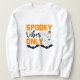 Spooky Vibes Somente o suéter do Dia das Bruxas A família moderna que combina com a camisa do Dia das Bruxas apresenta o texto "Spooky Vibes Only Halloween" em letras laranja e branca com um pequeno sotaque fantasma. Encomenda cada membro da sua tripulação.