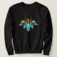 Barbeiro véu com asas transparentes azuis e lâmpada verde sobre fundo vestido, marrom, texturizado. Estilo Steampunk.