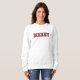 Entre no espírito de Natal com este suéter de Natal divertido. A inscrição "FELIZ" no estilo clássico da faculdade em cor vermelha com um toque de brilho falso de luz estelar.
