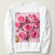 Esta é uma camiseta-doce Rosas Rosa Sonhenta. A camisola é uma camisola básica de mulheres. O design de rosas cor-de-rosa foi criado com arte gerativa. A arte apresenta rosas cor-de-rosa sonhadoras, brilho sujo, brilho rosa e cristais bonito. A imagem foi inspirada por Claude Monet. O design artístico tem uma qualidade etérea ideal para um guarda-roupa moderno. A imagem das rosas cor-de-rosa sonhadora está na frente e atrás da camisola.