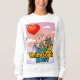 Bring bold color and powerful symbolism to your wardrobe with this vibrant cartoon-style design. A large glowing red heart sits at the top left, representing strength and resilience, while a group of cartoon men shoot arrows upward—yet every arrow breaks before reaching the heart, symbolizing an unbreakable spirit.