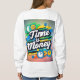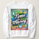 O design de camiseta apresenta um gráfico arrojado e atraente de um relógio com as palavras "Tempo é dinheiro" escritas em na moda. O design transmite a mensagem de que o tempo é um bem valioso e que deve ser usado com sabedoria. Perfeito para aqueles que valorizam a produtividade e a eficiência.