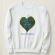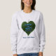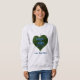 Leitura de texto azul, "TERRA e CORAÇÃO são soletrados com as mesmas letras", sobreposta a uma folha verde em forma de coração. Adicione seu próprio texto adicional.