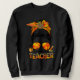 Moletom Thankful Teacher Leopard Messy Bun Autumn Thanksgi