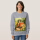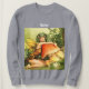 Fada loira de olhos azuis abraçando um grande cogumelo amanita para personalizar com sua própria saudação, nome, mensagem, etc