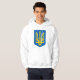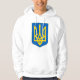 Patriotic Ukrainian coat of arms. Coat of Arms of Ukraine. Lesser Coat of Arms of Ukraine, the so called Tryzub. A stylised trident symbol in gold on a background shield of blue.