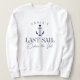 Fique aquecida na sua despedida de solteira náutica ou de iate com essas camisetas personalizadas fofas. O design apresenta uma ilustração de um navio azul-marinho encimada por um pequeno coração, com duas linhas de texto personalizado abaixo; mostrado com "Última Viagem Antes do Véu". Adicione o nome da noiva curvado na parte superior. As cores podem ser alteradas para combinar com suas cores preferidas usando a ferramenta de design da Zazzle.