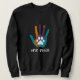 Camisola preta básica com uma pata de Voz impressa na impressão.