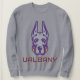 O logotipo do mascote da Universidade de Albany Great Dane apresenta uma representação estilizada da cabeça de Great Dane. O cão é ilustrado com linhas vivas e corajosas em roxo e cinzas, dando-lhe uma expressão feroz e confiante. Os ouvidos são altos, simbolizando o alerta e a força. Por baixo da cabeça de Great Dane está a palavra "UAlbany" escrita em letras ouros arrojadas e achatadas em roxo, reforçando a marca da universidade. Esta design representa as equipes esportivas da UAlbany, destacando poder, lealdade e determinação.