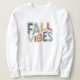 Camisola de outono feminina com a escrita Fall Vibes em vintage, letras angustiadas e cores de queda mutadas. Cores e tamanhos adicionais disponíveis.