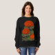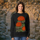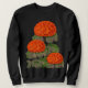 This women’s sweatshirt features an eye-catching floral design with three graceful red-orange geranium blossoms set against a deep black background. The vivid contrast creates a warm Mediterranean, summertime atmosphere that feels both elegant and timeless.