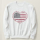 Grunge texturou, vintage, coração de bandeira americana com slogans patrióticos. Celebre o Dia da Independência ou mostre seu orgulho a qualquer momento com este design I Love USA em cores vermelho, branco e azul vintage! Mostrado aqui em uma camisola personalizada feminina. Este design legal faz um presente patriótico único!