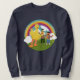 Ilustração inspirada por Vintage do Big Bird, Bert e Ernie em cores retrorativas, com arco-íris contra um céu azul
