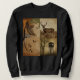 Rustic vintage style whitetail buck deer hunting with bow, arrow, tracks, and tree stand for man cave decor.