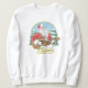 Esta design apresenta uma guitarra tocando Papai Noel com um fundo de pinheiros coberto de neve e o texto "Natal" escrito em tipografia popular. #natristmas #feriados #sazonal #papais noeis #moda #estilo #design #música #guitarra #inverno #neve