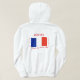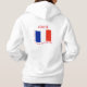 Este vestuário de qualidade apresenta um gráfico na frente da bandeira francesa com as palavras "Vive la France" abaixo e as palavras "Vive la" e "Liberté" de ambos os lados, com um lugar para o seu nome acima. Na parte de trás está a bandeira francesa com 'Vive la France' abaixo e um lugar para o seu nome acima. Todas as palavras podem ser mudadas para se adequarem às suas próprias necessidades, exceto "Vive la France" na frente, que faz parte do gráfico de bandeira.
