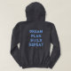 Este capuz confortável é uma maneira divertida de mostrar seu amor por construir e criar coisas. Personalizável. Texto frontal: "Vivendo o Sonho" Texto de trás: "Dream Plan Build Repete"