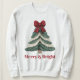 Moletom Yarn Faux Embroidery Christmas Tree Merry Bright
