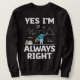 Moletom Yes I m Always Right Math Mathematician Math Teach