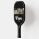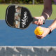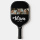 Custom Mom Established Modern Bold Script Black 3 Photo Pickleball Paddle with White Text on a Black Background. Replace the photos with your own and change the years to the year(s) you became a mom. You can change "mom" to mum or mama if needed (leave the little square in place).