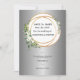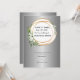 Um anúncio elegante de save-the-date com sotaques florais intrincados em dourado e verde, irradiando sofisticação e charme.
