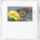 Monarca no adesivo retangular amarelo da Zinnia