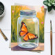 Monarch Butterfly Jar Watercolor Painting Card