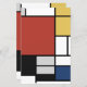 Composição com Plano Vermelho Grande, Amarelo, Preto, Cinza e Mondrian Piet Azul começou a criar as pinturas definitivas de abstrato no 1920 pelo qual ele é mais conhecido. Ele manteve sua paleta limitada ao branco, preto e cinza além das três cores primárias, vermelho, amarelo e azul. Suas composições construídas a partir de linhas densas, pretas, horizontais e verticais que delimitam os vários retângulos de cor. Essa foi a simplificação dos elementos pictóricos, essenciais para a criação de uma nova arte de abstrato, por Mondrian. A variedade de blocos de cor e linhas diferentes de largura cria um sentido de ritmo que flui pela canvas, ecoando o da vida moderna. Essa peça assimétrica Composição com Plano Vermelho Grande, Amarelo, Negro, Cinza e Azul, pintada originalmente em 1921 apresenta um grande bloco dominante de cor, nesse quadro vermelho, tema comum visto em suas obras posteriores. Esta é equilibrada pela distribuição dos blocos menores de cinza amarela, azul e branca.