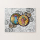 Vintage Dourado Dólares e outras moedas e dinheiro numa quebra-cabeça concebida apenas para pessoas em finanças ou bancos ou para qualquer pessoa que ame o jingle do sucesso. Salve o quebra-cabeça final para decorar seu escritório, banco ou corretagem...Ou apenas para inspirá-lo.