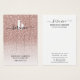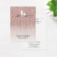 Nossa placa de exibição moderna e ousada tipografia apresenta clipes de cabelo e barrettes, uma inicial de monograma branco em serif minúscula, definida em um elegante fundo ombre glitter dourado rosa. Completar o monograma de sua empresa é seu primeiro nome pessoal (ou um nome de empresa abreviado) em script de escrita manual feminina e chique, a tinta preta. Na frente da placa estão duas linhas impressas para guiar o corte das fendas para inserir os clipes de cabelo e, abaixo disso, seu nome comercial e número de telefone, também a tinta preta. Detalhes adicionais sobre sua empresa, incluindo endereço, endereço de e-mail e nomes de mídias sociais, podem ser personalizados na parte traseira do cartão. Basta substituir o texto de exemplo por sua própria redação no modelo de personalização.