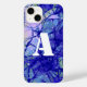 design de abstrato de arte legal e contemporânea com monograma de tipografia de stencil. A arte é única, na moda e moderna e tem formas circulares azuis e lilás. O "A" inicial pode ser personalizado na personalização desta caixa de texto. Para obter ajuda com a personalização, produtos correspondentes ou para um design personalizado, entre em contato comigo por e-mail: ursuladawnmoon@gmail.com