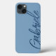 Esta capas de iphone apresenta um fundo azul com um script azul de marinho moderno. Personalize-o com seu nome ou iniciais, uma capa de telefone moderna de na moda.