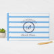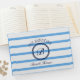 Personalize este Monograma Beach House Guest Book com seu nome familiar e registre as memórias de excelentes de Amigos e Familiares que visitam sua casa no oceano. As faixas brancas e azuis, com Marinho azul, serão um suplemento chic para sua casa na praia. Perto como um Presente de Aquecimento Doméstico em Praia.