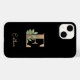 A capa de telefone preta elegante apresenta um monograma botânico dourado no centro.