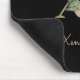 O mouse preto elegante apresenta um monograma botânico dourado no centro.
