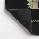 O mouse preto elegante apresenta um monograma botânico dourado no centro.
