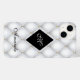 Um design elegante e chico com um fundo branco luxuoso e tufado com divês de ouro e um diamante preto com seu monograma e nome em tipografia elegante de roteiro. Faça uma declaração com esta capas de iphone mínima a preto e branco.