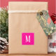 Um adesivo quadrado com um monograma branco sobre fundo rosa quente. Personalize o adesivo com suas iniciais, cores de fundo, entre outras opções.