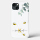 Um fundo branco chic. Decorado com um eucalipto de cor aquosa verde, folhagem e biscoitos bonitos e felizes. Personalize e adicione sua letra monográfica, inicial e nome. O nome é escrito com um moderno estilo escrito à mão com traços. O nome em preto e a letra do monograma em amarelo. Para manter as hastes, exclua apenas o nome da amostra, deixe os espaços ou emoji na frente e depois do nome.